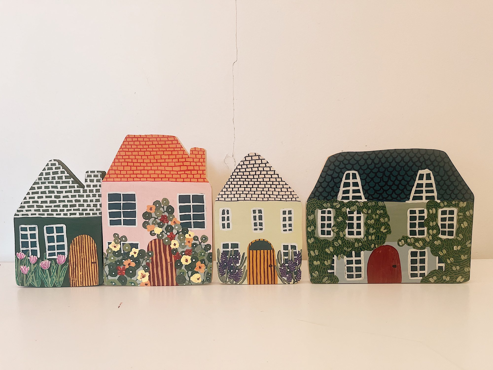 Made from plywood timber, these houses are hand cut and hand painted in my little studio. Each house comes with a hook but we can add additional hooks should you prefer this.