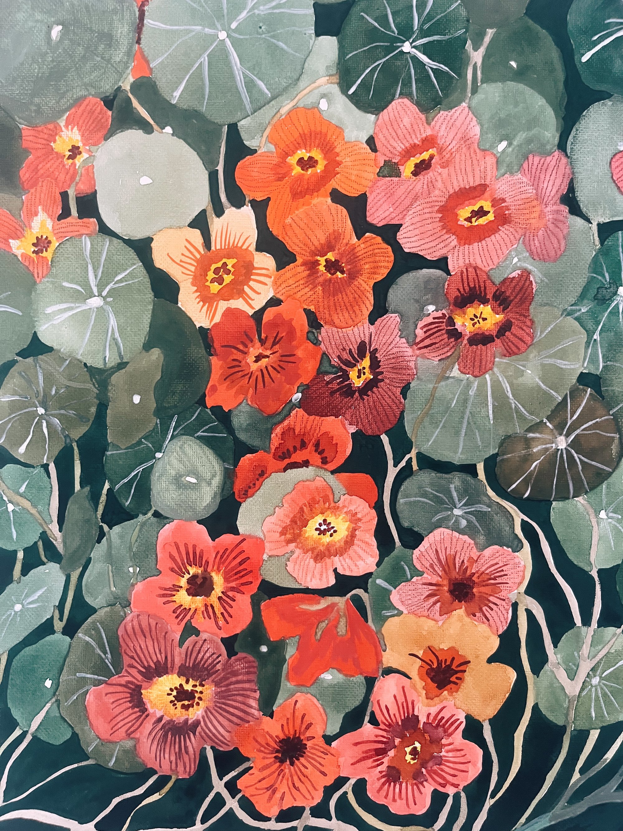 Nasturtiums are very nostalgic to me and I keep returning to them when I need to be reminded of simpler times. So if you need this reminder, I hope these nasturtiums give you the permission to drift in a sweet past time.